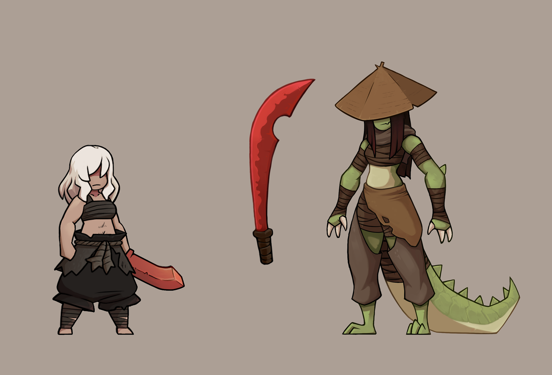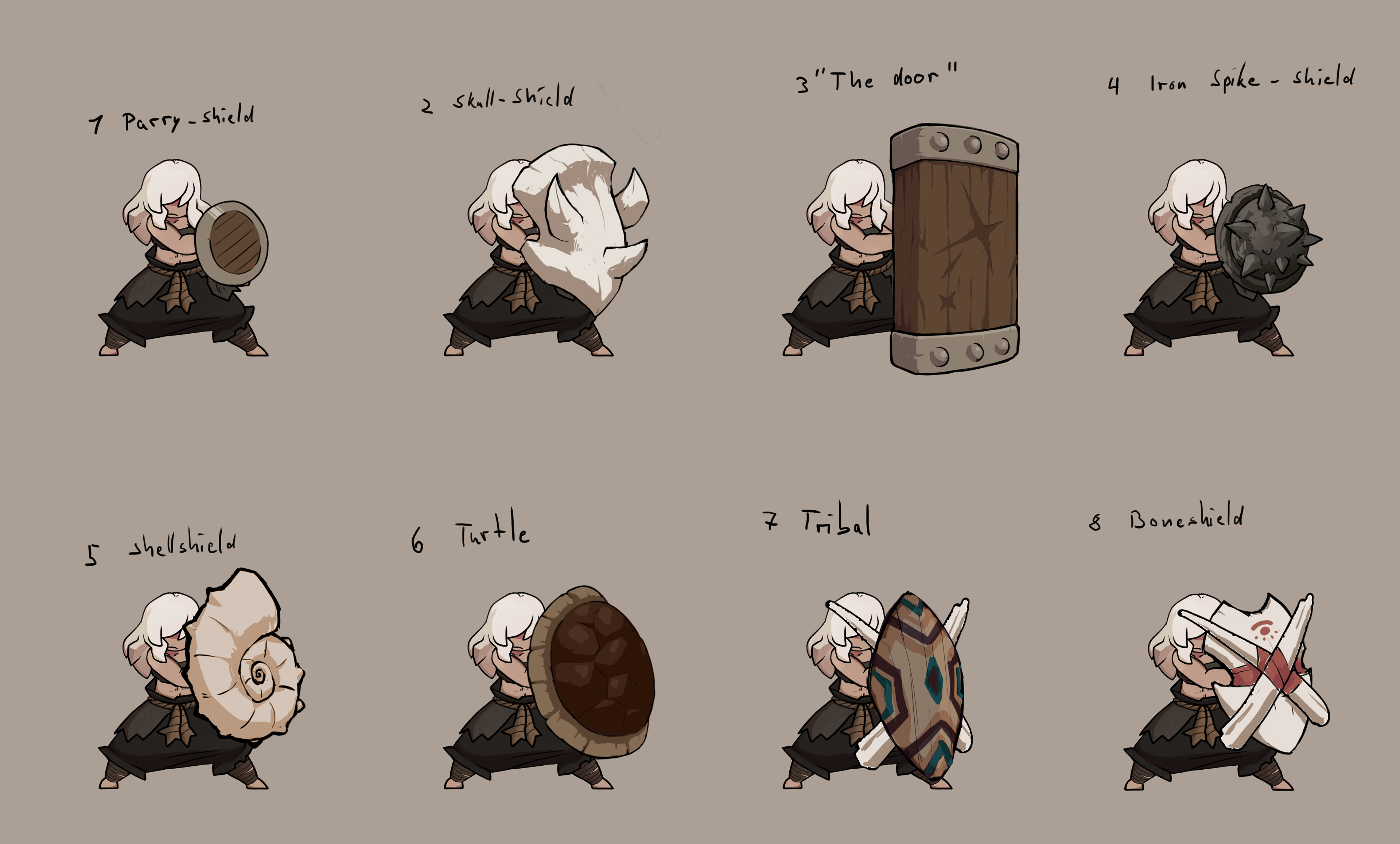 Concepts and Illustrations for a 2D soulslike game, Illustrations are made to work with the "Spine" animation program. This was an unreleased project by Grimbart Tales.